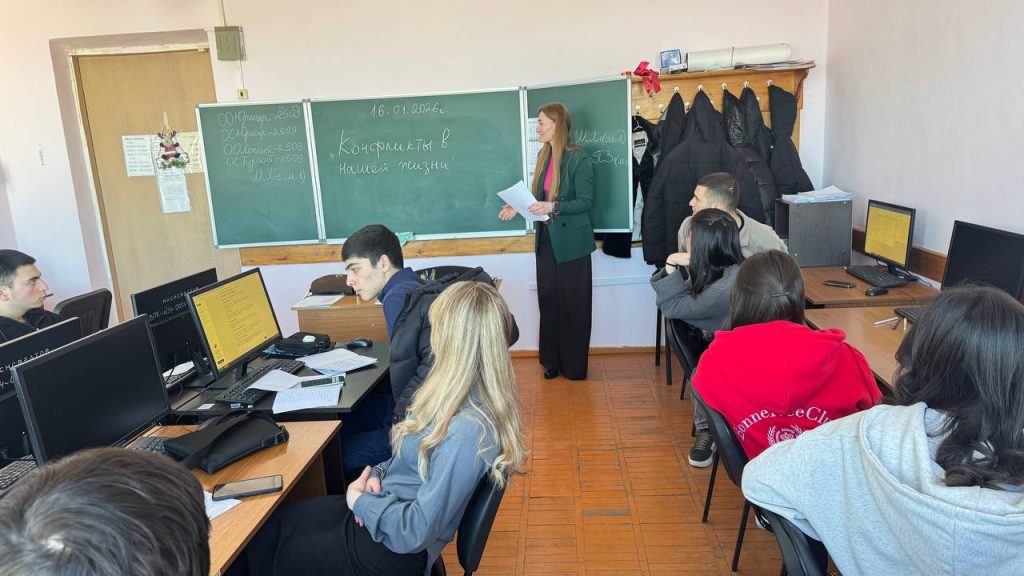 15-16 января в целях профилактики и разрешения конфликтных ситуаций, в рамках плана воспитательной работы среди студентов Владикавказского профессионального колледжа, провели серию мероприятий по теме: «Конфликты в нашей жизни». Задачами мероприятий являлись: • Ознакомление студентов с теоретическими основами конфликтов. • Развитие навыков конструктивного общения и решения конфликтов. • Формирование у студентов позитивного отношения к разрешению конфликтных ситуаций. Были использованы различные методы работы, включая лекции, тренинги и индивидуальные консультации. Благодаря проведённым мероприятиям студенты колледжа получили ценные знания и навыки, которые помогут им более эффективно разрешать конфликты как в учебной, так и в повседневной жизни. Это, в свою очередь, будет способствовать созданию более благоприятной и продуктивной атмосферы в учебном заведении. Руководили мероприятием психолог-педагог Малдзигова О. М. и заместитель директора колледжа по воспитательной работе Тавасиева Т. Т