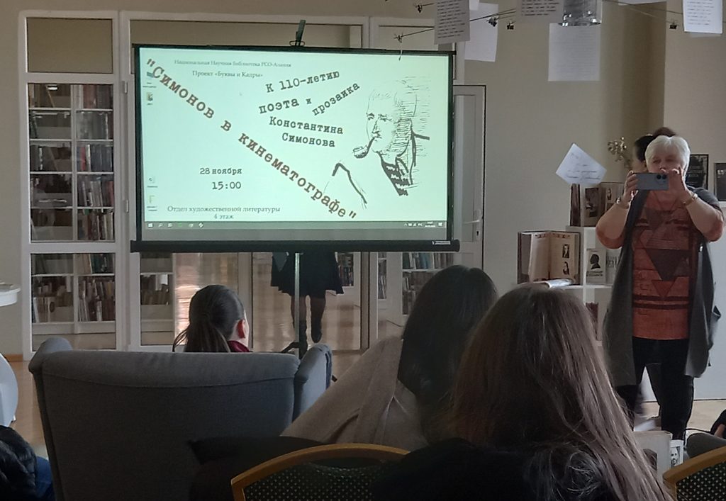 29 ноября 2025 года в зале художественной литературы Национальной научной библиотеки Северной Осетии к 110-летию со дня рождения Константина Симонова в авторском проекте Георгия Цирихова «Буквы и кадры» состоялась лекция «Константин Симонов в кинематографе», на которую были приглашены студенты группы ООПРД-2509-01 вместе с учебным менеджером Зангиевой З.Н., преподавателем литературы Цопбоевой Л.Х. и заместителем директора по практической подготовке Тигишвили Н.Н.