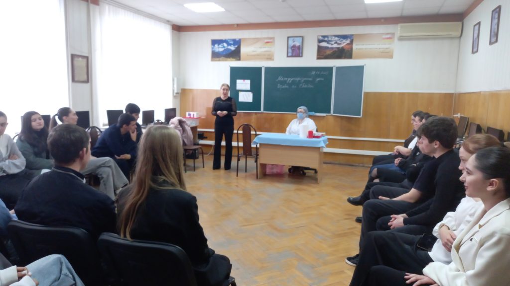 По плану воспитательной работы во Владикавказском профессиональном колледже состоялась важная лекция-беседа на тему профилактики ВИЧ-инфекции и вирусных гепатитов среди молодежи, приуроченная к Международному дню борьбы со СПИДом, который ежегодно отмечается 1 декабря. Мероприятие было направлено на повышение осведомленности студентов о рисках распространения инфекций и формирование осознанного подхода к своему здоровью. Специалист Центра по борьбе со СПИДом Зураева В. Т. подчеркнула три ключевых пути передачи ВИЧ-инфекции: через кровь, половым путем и от матери к ребенку, а также акцентировала внимание студентов на значимости своевременного тестирования, необходимость отличать проверенную информацию от распространенных мифов и ложных утверждений, распространяемых в Интернете. Особое внимание уделялось вопросам толерантного отношения к людям, живущим с ВИЧ. Студенты были приглашены к обсуждению этики взаимодействия с людьми, имеющими этот диагноз, подчеркивая важность поддержки и понимания.
